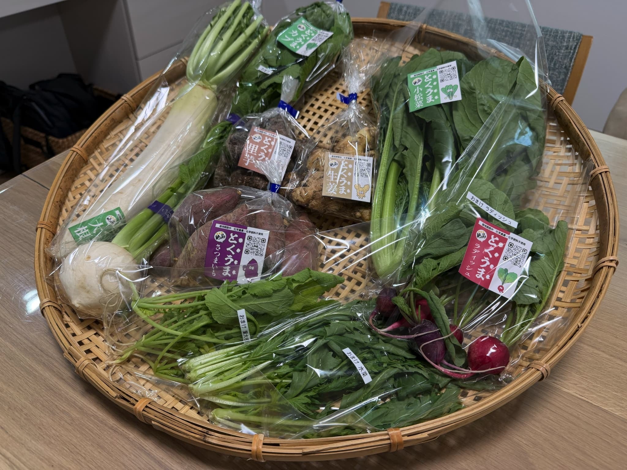 大根、カブ、小松菜、水菜、サツマイモ、里芋、生姜の5〜7品が基本となりますが、野菜の生育状況によっては他の品目に変更することがございます。